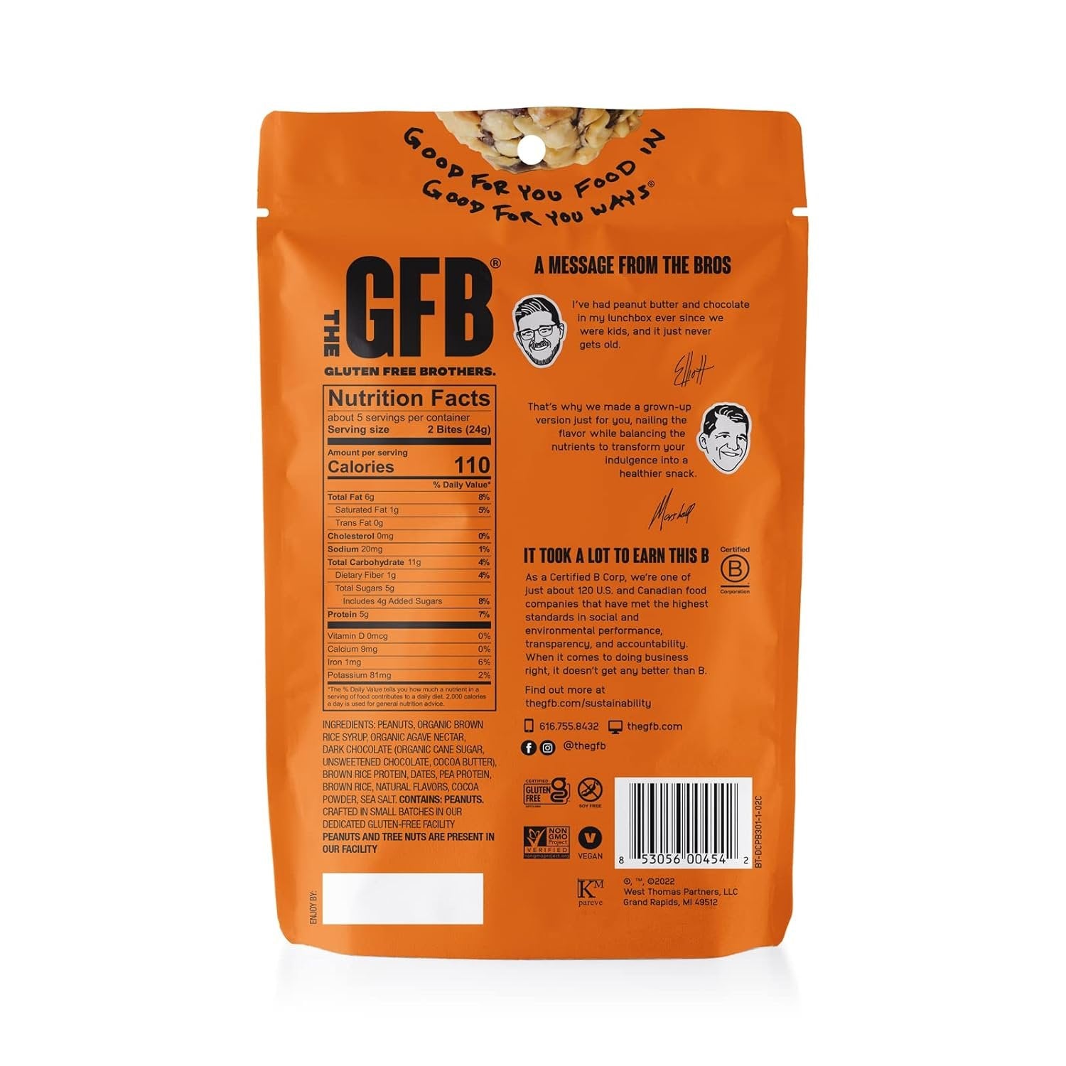 • Contains 1 - 4 Ounce Bag of The GFB Gluten Free Bites, Dark Chocolate Peanut Butter