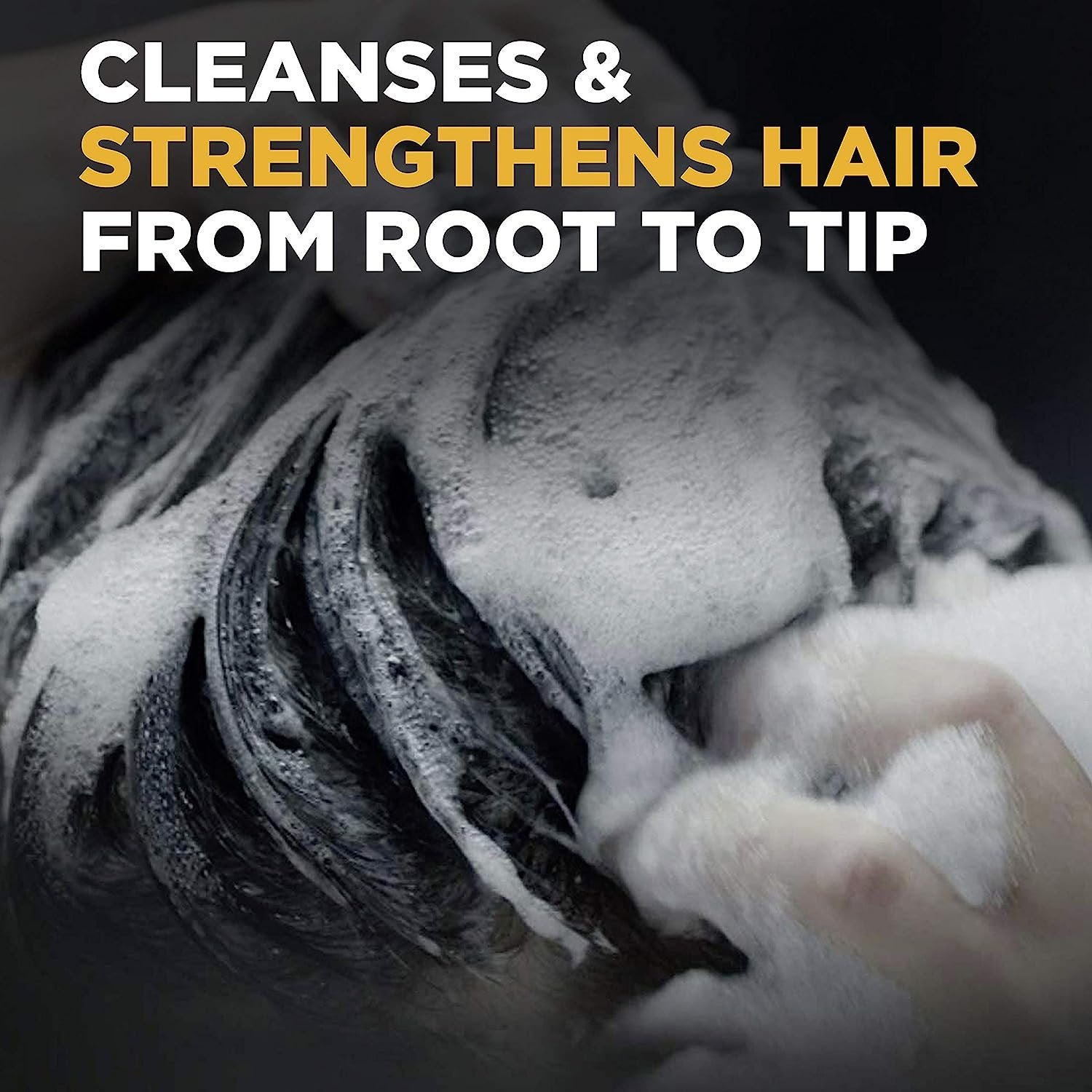 • With caffeine and calcium to help strengthen hair, leaving it visibly healthy, thicker, and resilient