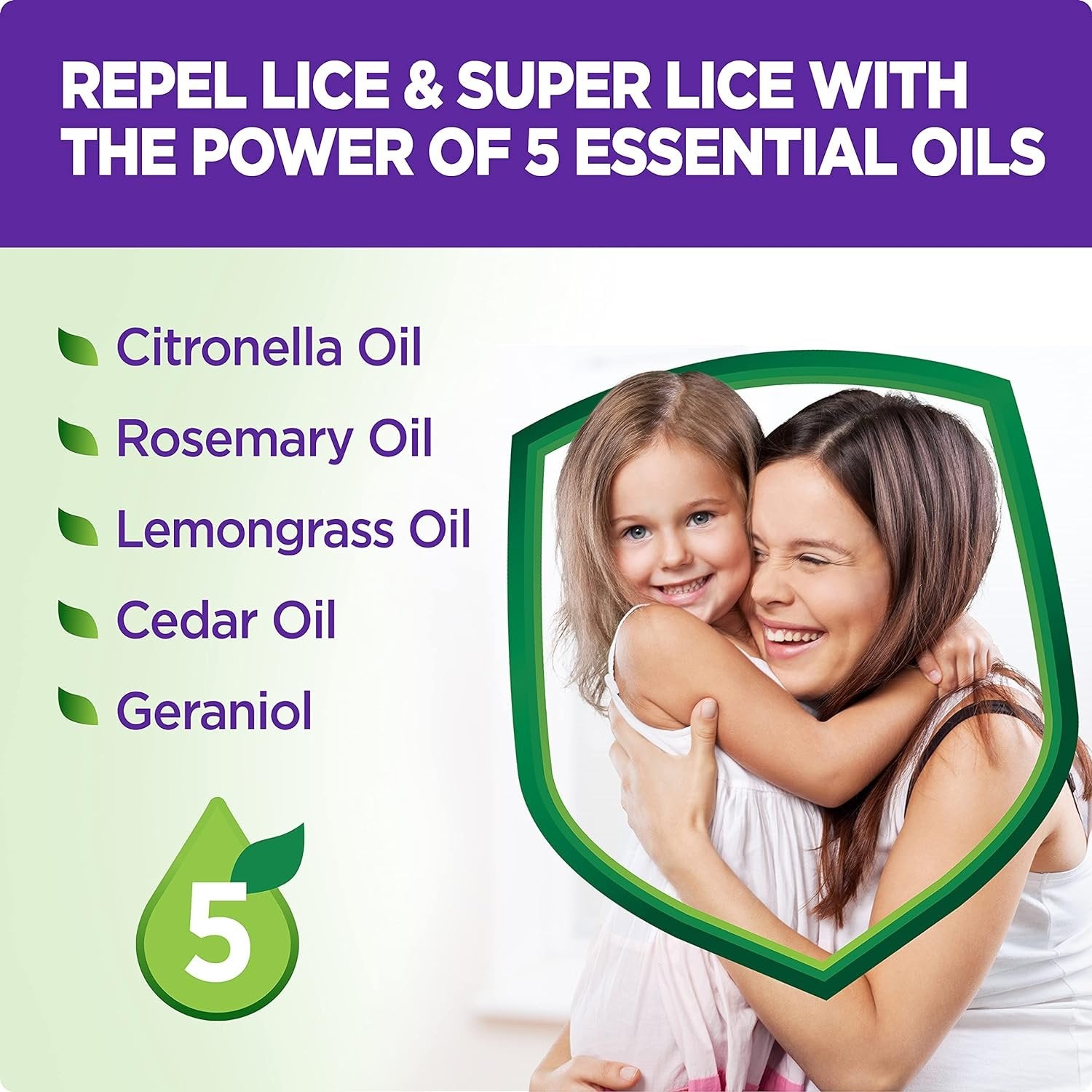 • POWERED BY EXCLUSIVE BLEND OF 5 NATURAL ESSENTIAL OILS: Specially developed with an exclusive blend of 5 natural essential oils (Citronella, Rosemary, Lemongrass, Cedar, and Geraniol) to repel head lice.