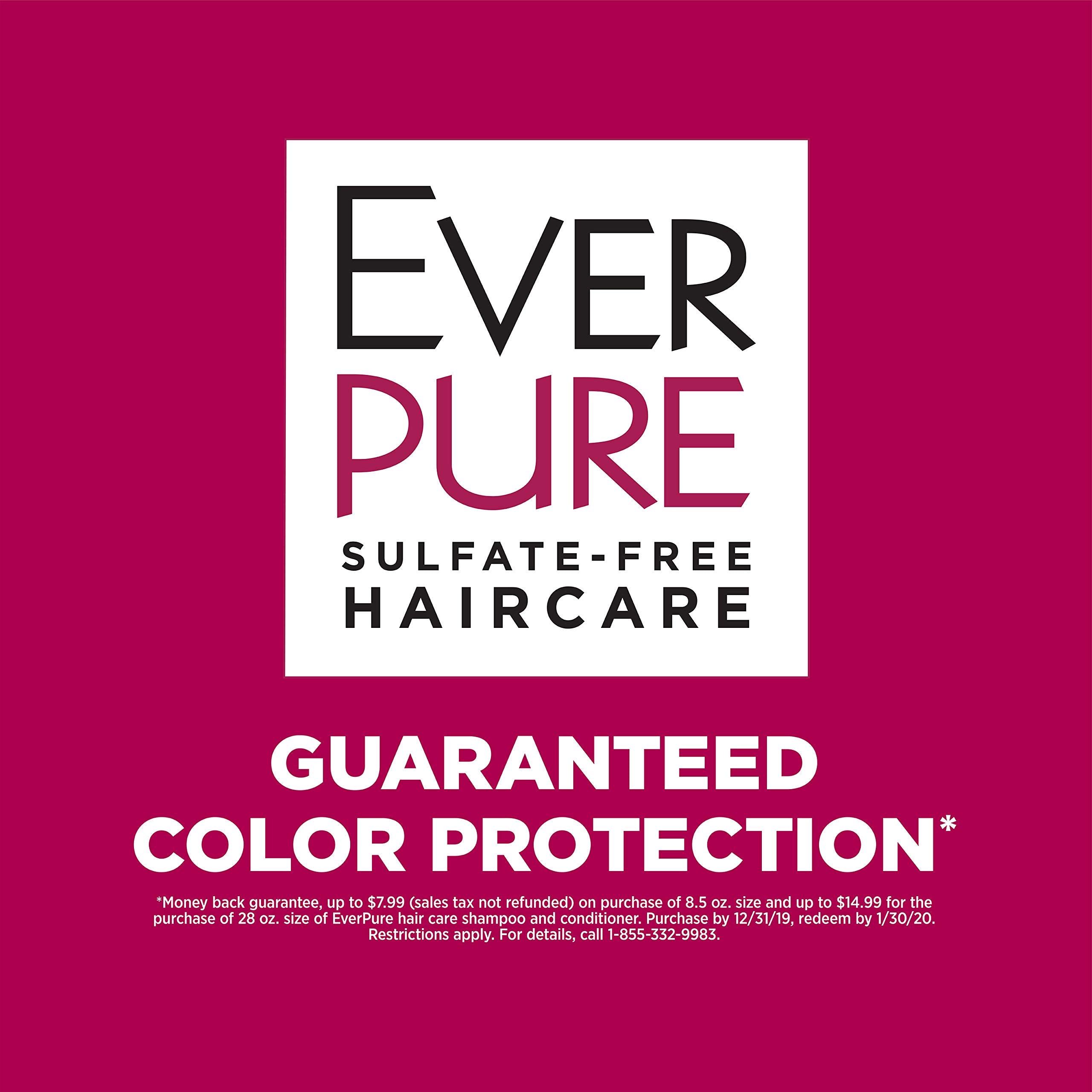 EverPure Moisture Conditioner with rosemary deeply replenishes dry hair with 2X more moisture, lush-touch softness and luminous shine. Keeps color pure for up to 4 weeks. Color-treated hair requires special care. Our hair care is especially gentle on color. There are no harsh sulfates, salts or surfactants that can strip, dull and damage hair. 100% Sulfate Free, Paraben Free, No Harsh Salts, Vegan â Keeps Color Pure up to 4 Weeks â Deeply Replenishes Moisture â Sulfate Free â Rosemary Botanicals System of shampoo & conditioner vs. non-conditioning shampoo. No animal derived ingredients or by-products. Formula not tested on animals. After using EverPure Moisture Shampoo, apply to wet hair and massage gently. Leave on for 1-2 minutes. Rinse.