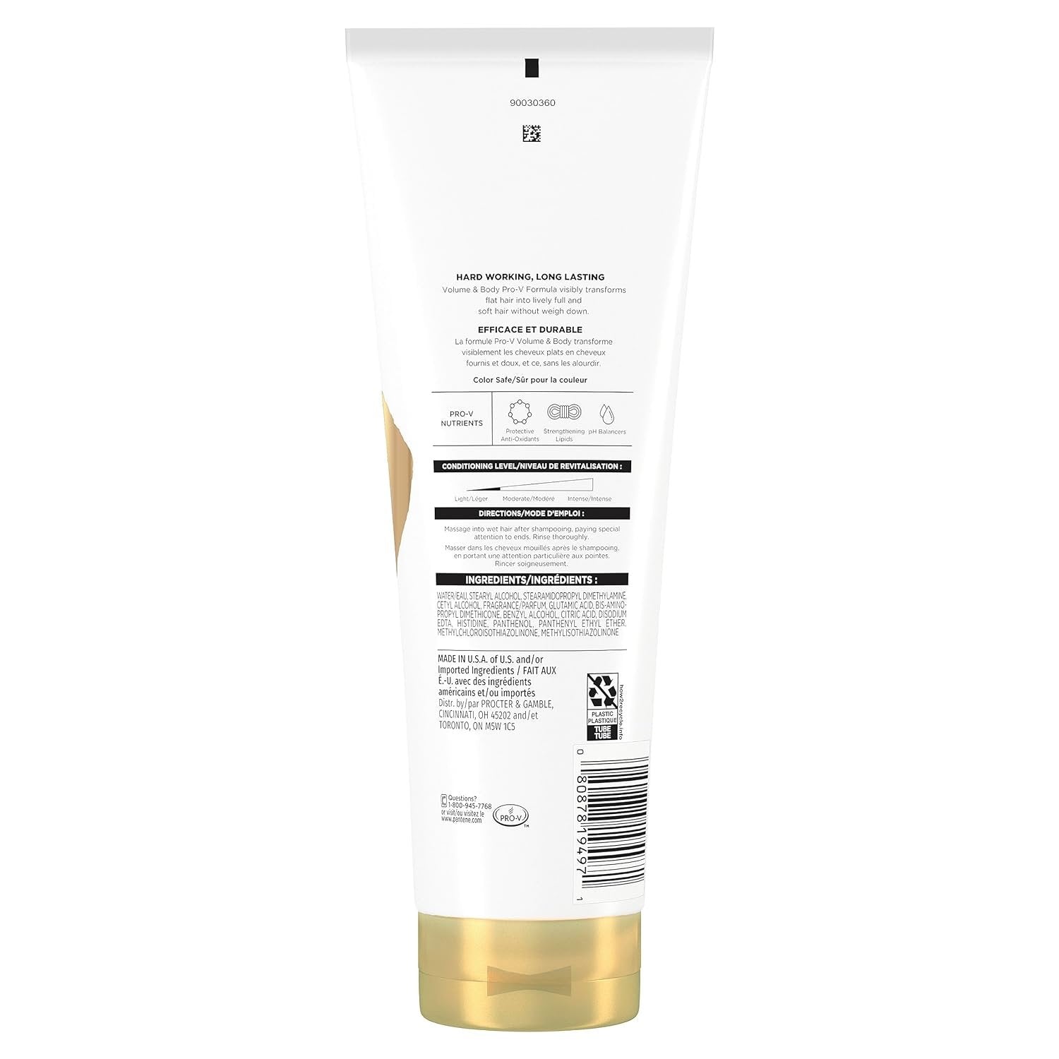 HARD WORKING, LONG LASTING Your haircare should work as hard as you do. Pantene PRO-V Volume & Body Conditioner visibly transforms flat hair into lively full and soft hair without weigh down. This volumizing conditioner contains 2x more nutrients, so you get fullness with every wash that lasts 72+ hours. This formula is safe for colored hair and crafted with protective anti-oxidants and pH balancers to leave you with volume and healthy strands. With Pantene Pro-V Volume & Body, say goodbye to flat strands and unleash soft, fuller hair that looks and feels beautiful for longer. 2X MORE NUTRIENTS, LASTS FOR 72+ HOURS This conditioner for thin hair is designed to be used with our complete Volume & Body Collection to infuse your hair with body and 2x more nutrients. These powerful hair volume products work together to permeate every strand, creating body and fullness that last 72+ hours without washing. These formulas are crafted with protective antioxidants, Pro-Vitamin B5, and pH balancers, and made without parabens or colorants. TO USE After cleansing, massage conditioner into your hair, making sure to pay special attention to your ends. Rinse thoroughly. This color-safe formula is gentle enough for everyday use on chemically-treated hair or color-treated hair, and results last for 72+ hours without washing.