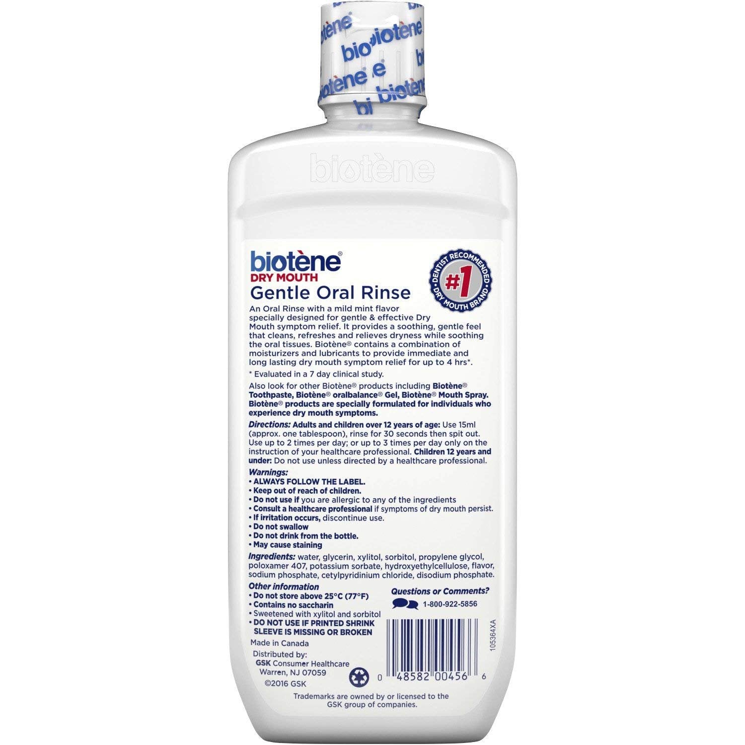 Biotene Mild Mint Moisturizing Gentle Oral Rinse, Alcohol-Free, for Dry Mouth, 16 ounce/Expires 02/2024