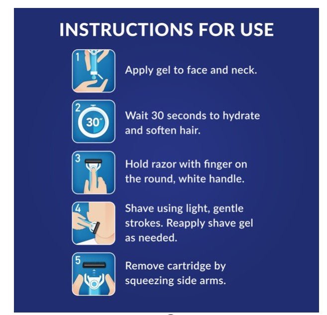 • Special non-foaming gel hydrates the hair and lubricates the skin for a comfortable, mess free shave - no water required