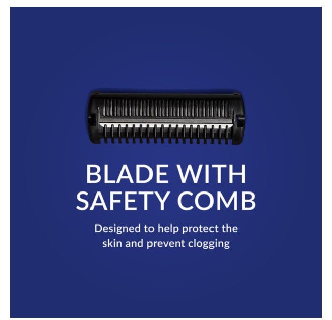 • A blade with specifically designed safety comb to help protect the skin and prevent clogging