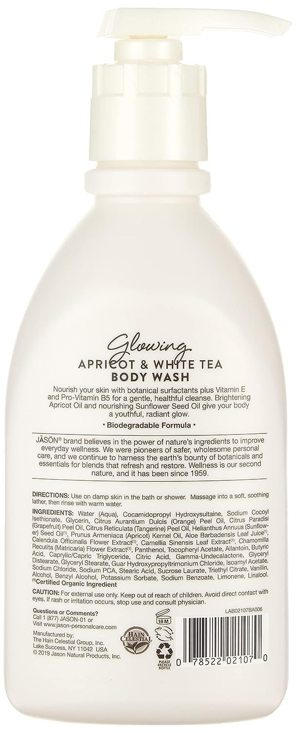 JASON Natural Body Wash & Shower Gel, Glowing Apricot & White Tea, 30 Oz