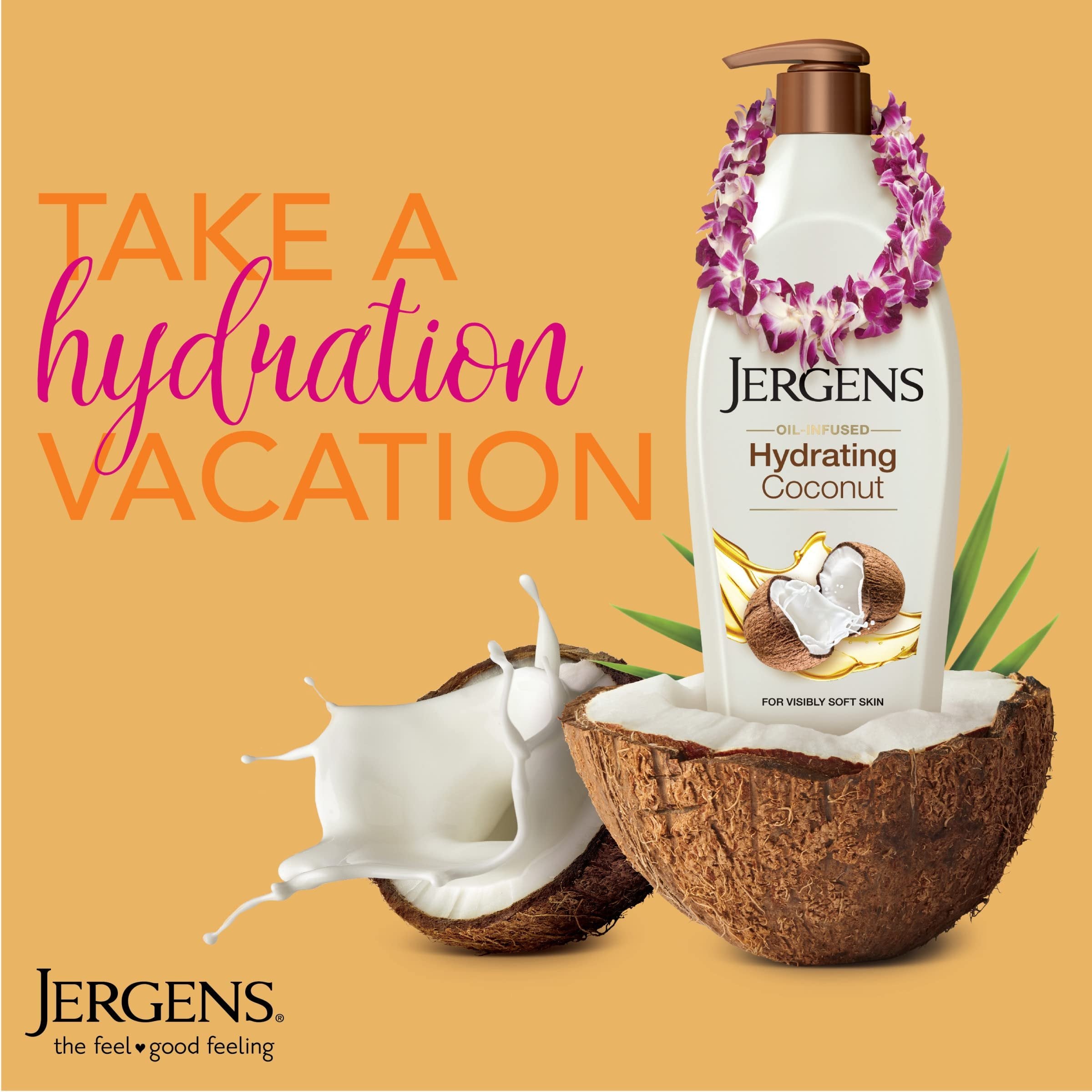 Jergens Hydrating Coconut Body Lotion, Hand and Body Moisturizer Hydrates Dry Skin Instantly, Infused with Coconut Oil, Dermatologist Tested, 16.8 oz