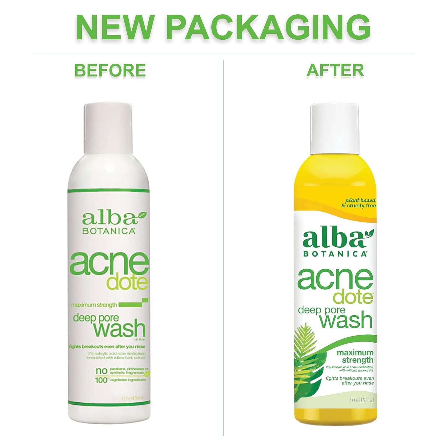 Take control of your skin with Alba Botanica Acnedote Maximum Strength Deep Pore Wash. Made with a 2% salicylic acid and willow bark solution, this cleanser treats and prevents acne and breakouts. This foaming wash fights dirt, oil and pore-plugging residue to leave you with skin that is clear and smooth without irritation. Our formula is powered by botanicals such as parsley extract and witch hazel to calm the skin. Our 100% vegetarian formula is oil-free and does not contain any parabens, phthalates, or synthetic fragrances. It is also not tested on animals. Includes one 6 oz. bottle of Alba Botanica Acnedote Maximum Strength Deep Pore Wash. At Alba Botanica, our product family constantly evolves alongside health, beauty, and ingredient knowledge and trends. We’re dedicated to making high quality, 100% vegetarian products that overflow with botanical ingredients. Do beautiful – that’s the motto that motivates our body loving products that nourish the skin, hair and, of course, the soul.