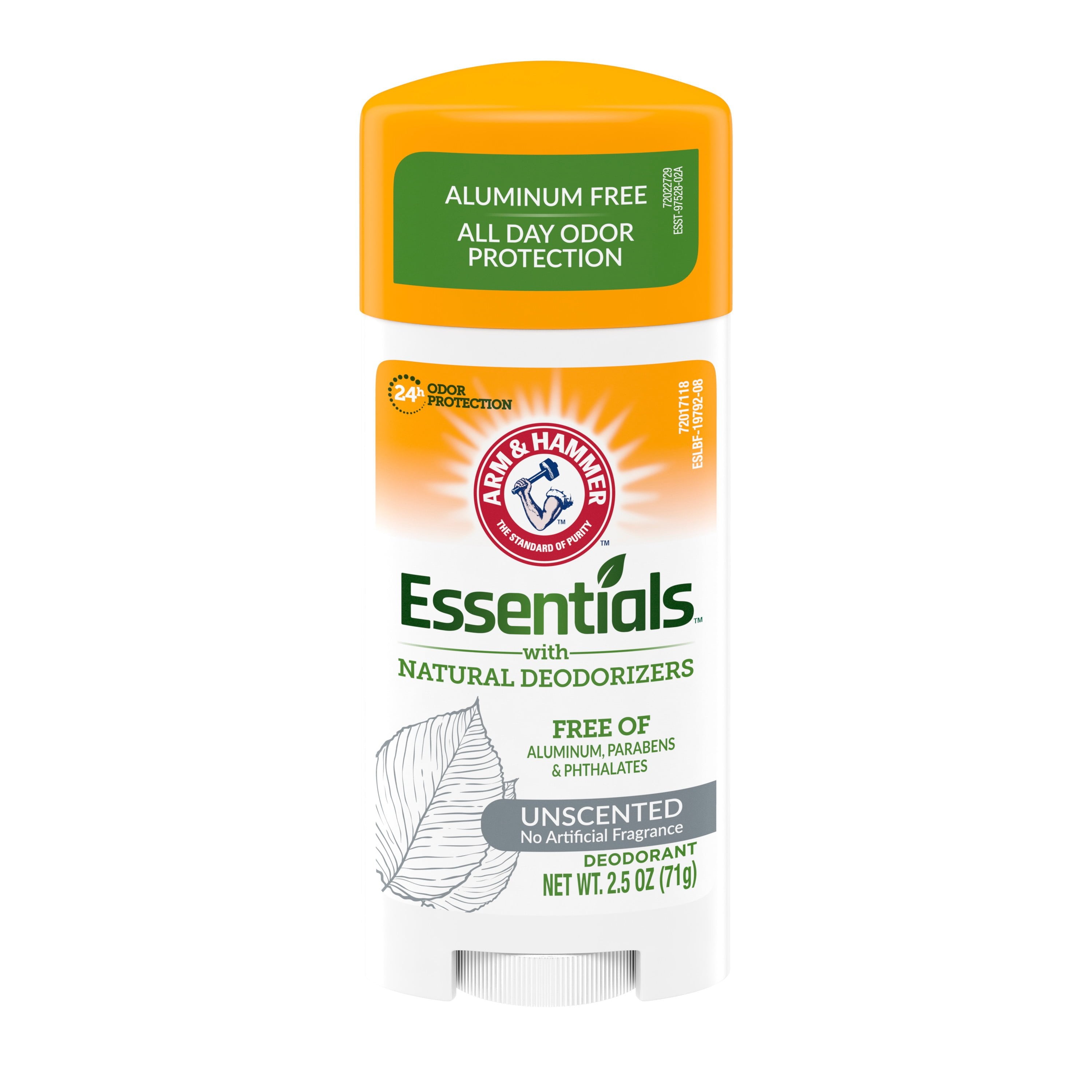 ARM & HAMMER Essentials Deodorant- Unscented- Solid Oval- 2.5oz- Made with Natural Deodorizers- Free From Aluminum, Parabens & Phthalates