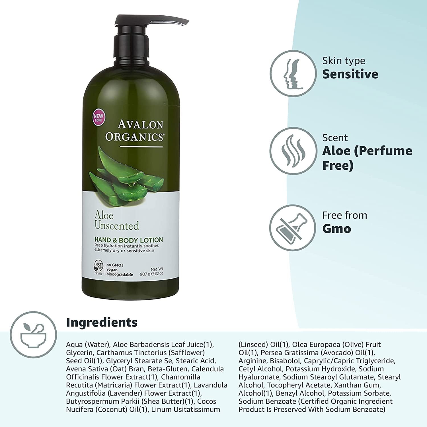 Deeply nourish and moisturize extra dry skin with Avalon Organics Nourishing Lavender Hand & Body Lotion. Made with organic botanicals and essential oils, this plant-based formula replenishes and rebalances skin for long lasting hydration. Lavender essential oil, aloe, plant lipids and nutrient-rich beta-glucan work together to restore the skin's lipid balance, leaving it feeling soft and supple. This certified organic lotion is made with non-GMO ingredients and no parabens, harsh preservatives, synthetic colors or fragrances, phthalates or sulfates. It is also vegan and not tested on animals. Includes one 32 oz. bottle of Avalon Organics Nourishing Lavender Hand & Body Lotion. Curated from nature’s pure resources, Avalon Organics NSF organic certified skin care, hair care and bath & body products are deep-rooted in a profound respect for the earth. Combining modern science with the botanical world, we constantly strive to perfect each formula, evolve expertise and deliver innovation. Searching out the beautifying benefits hidden within each plant, Avalon Organics thoughtfully develops formulas to not only nourish the body, but also nourish the mind and the soul.