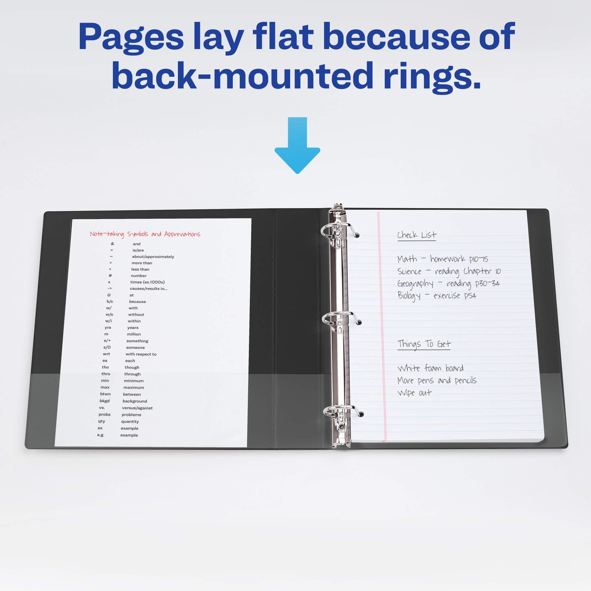 - Important documents and presentation materials stay flat like they're supposed to because slant rings are mounted on the rear binder panel instead of on the spine
