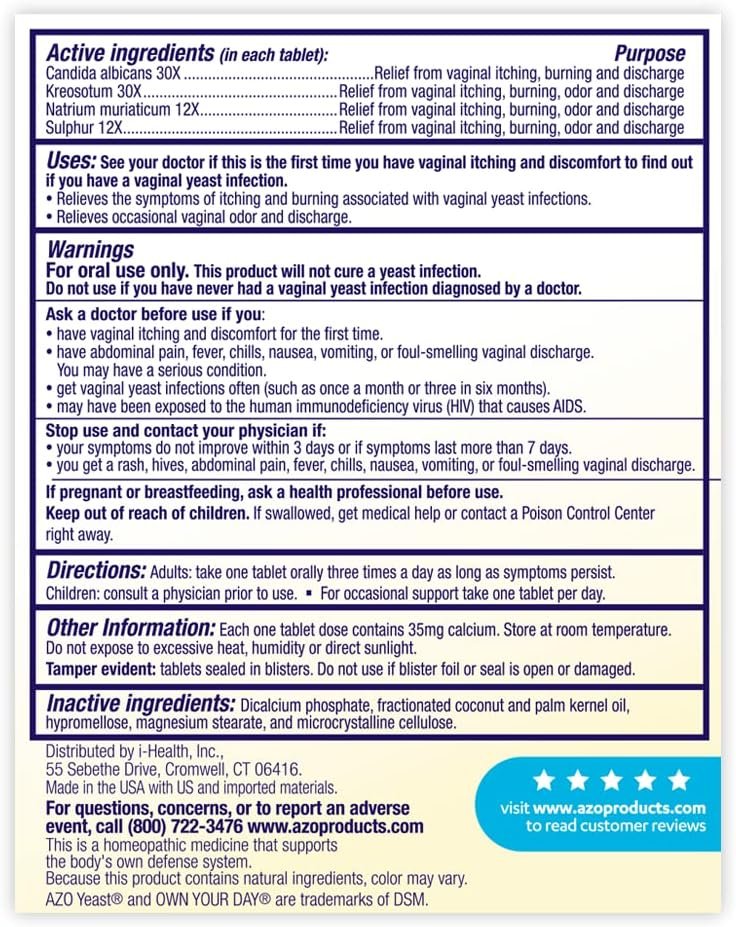 AZO Yeast Plus Dual Relief Tablets, Yeast Infection and Vaginal Symptom Relief, Relieves Itching & Burning, 60 Count