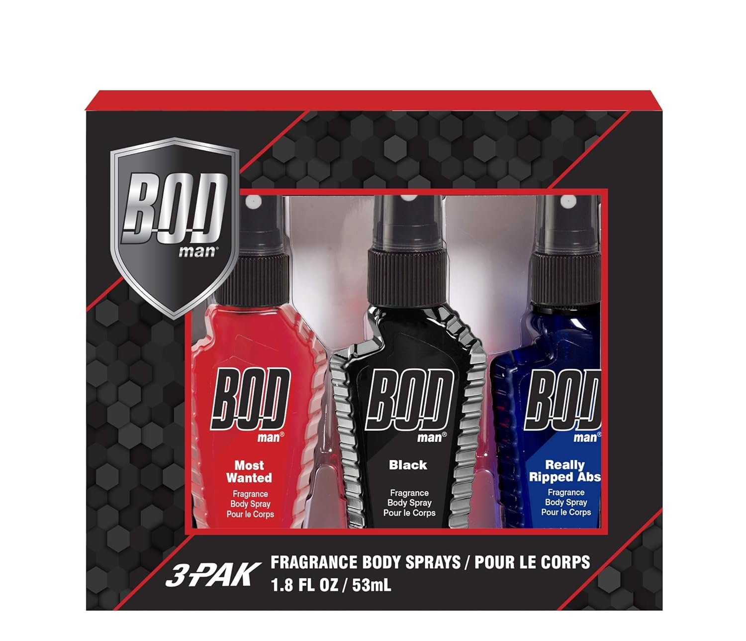 BOD Man Bod Man Variety Fragrance Body Spray Trio Gift Set: Featuring Black, Most Wanted, and Really Ripped Abs, 3x 1.8oz, 5.4 ounces