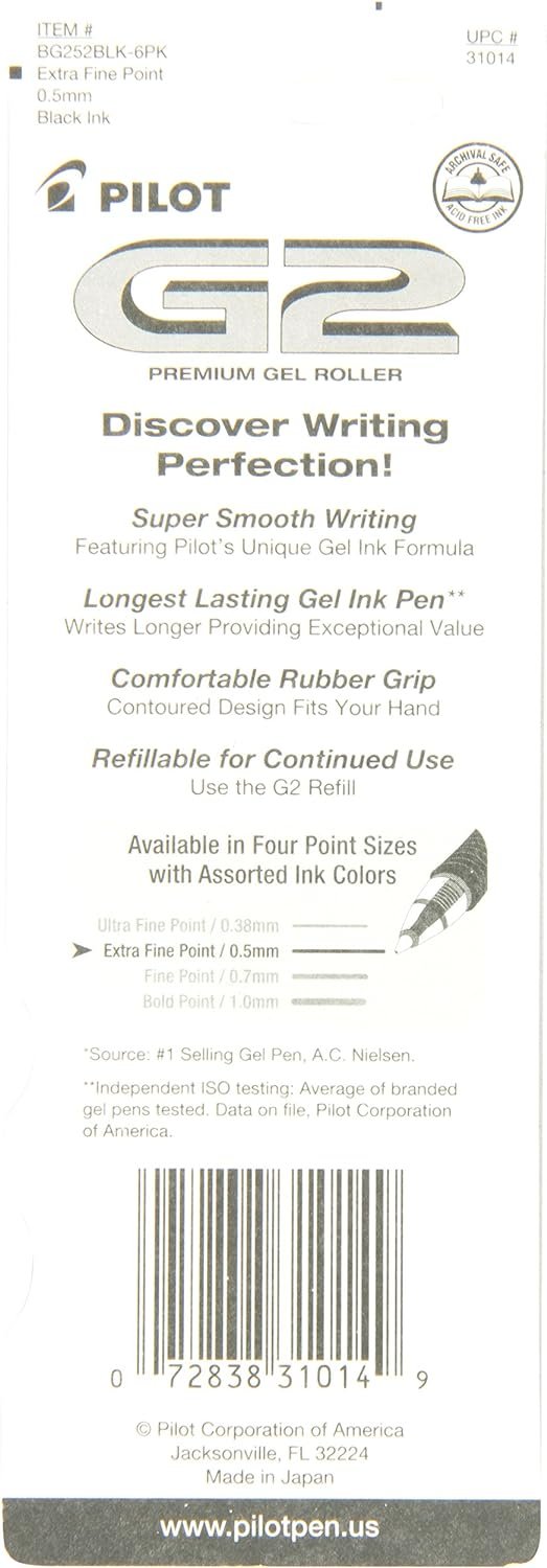 Pilot, G2 Premium Gel Roller Pens, Extra Fine Point 0.5 mm, Pack of 2, Black