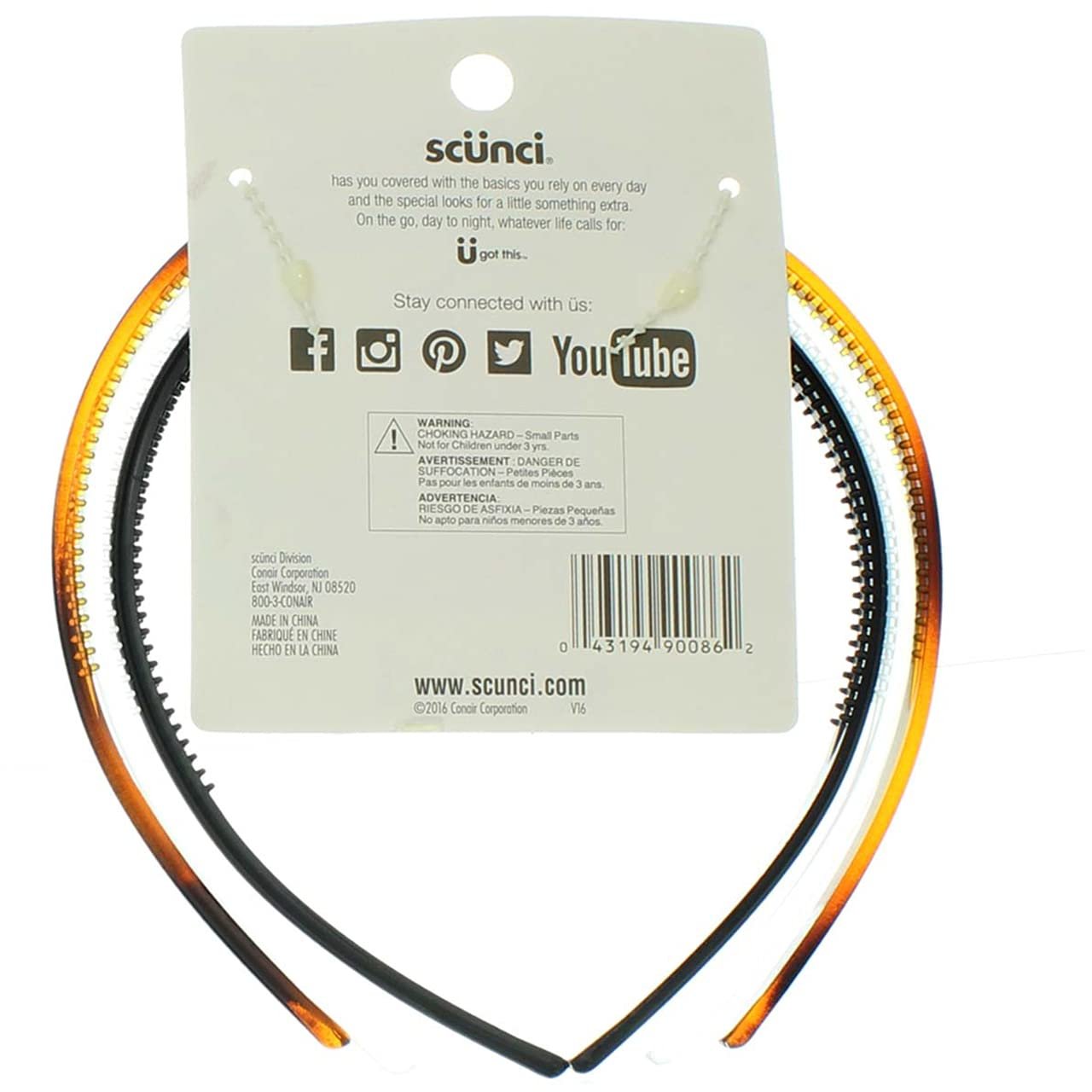 Packs of 3 Scunci Effortless Beauty Plastic Headbands Black, Clear, Brown. Scunci Plastic Headbands: Everyday fashion. Assorted colors - Black, Clear, Brown. Headbands feature teeth for better hold. Great for all hair types and ages