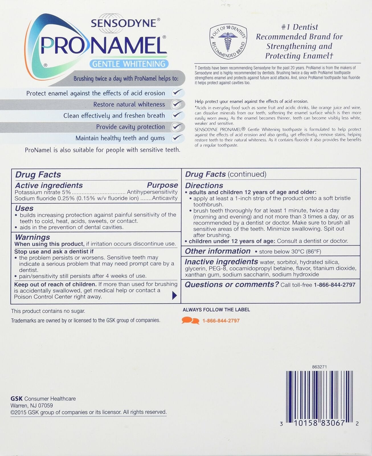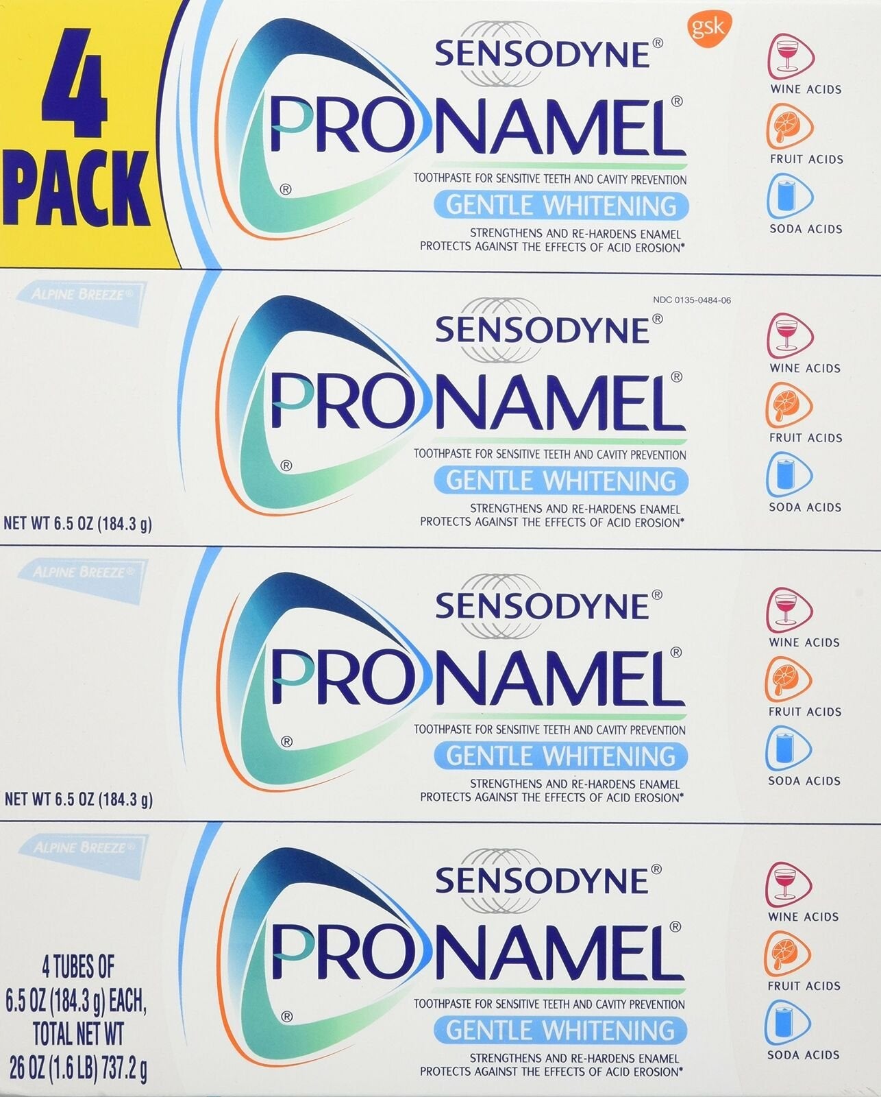 Sensodyne Pronamel Gentle Whitening Tooth Paste 4 Pack/ 6.5oz / Expires-Oct 2022