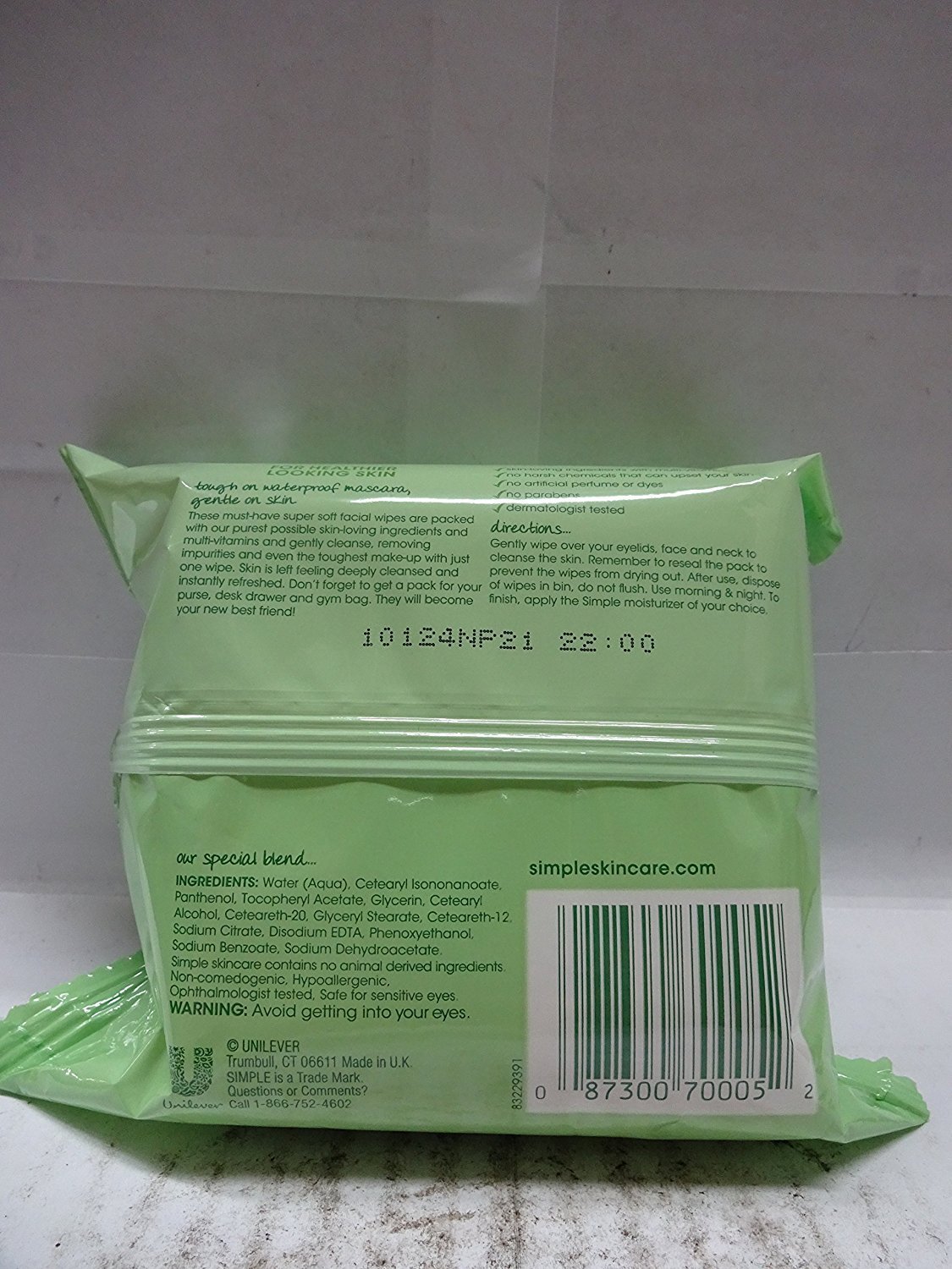 Simple Cleansing Facial Wipes (Packaging may vary),25 Each