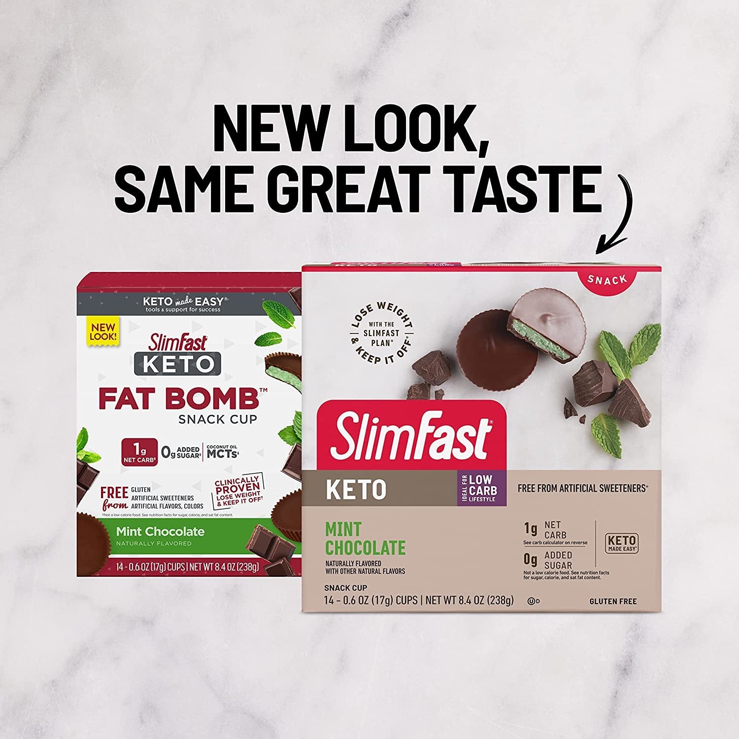 SlimFast Low Carb Chocolate Snacks, Keto Friendly for Weight Loss with 0g Added Sugar & 3g Fiber, Mint Chocolate Cup, 14 Count Box (Packaging May Vary)
